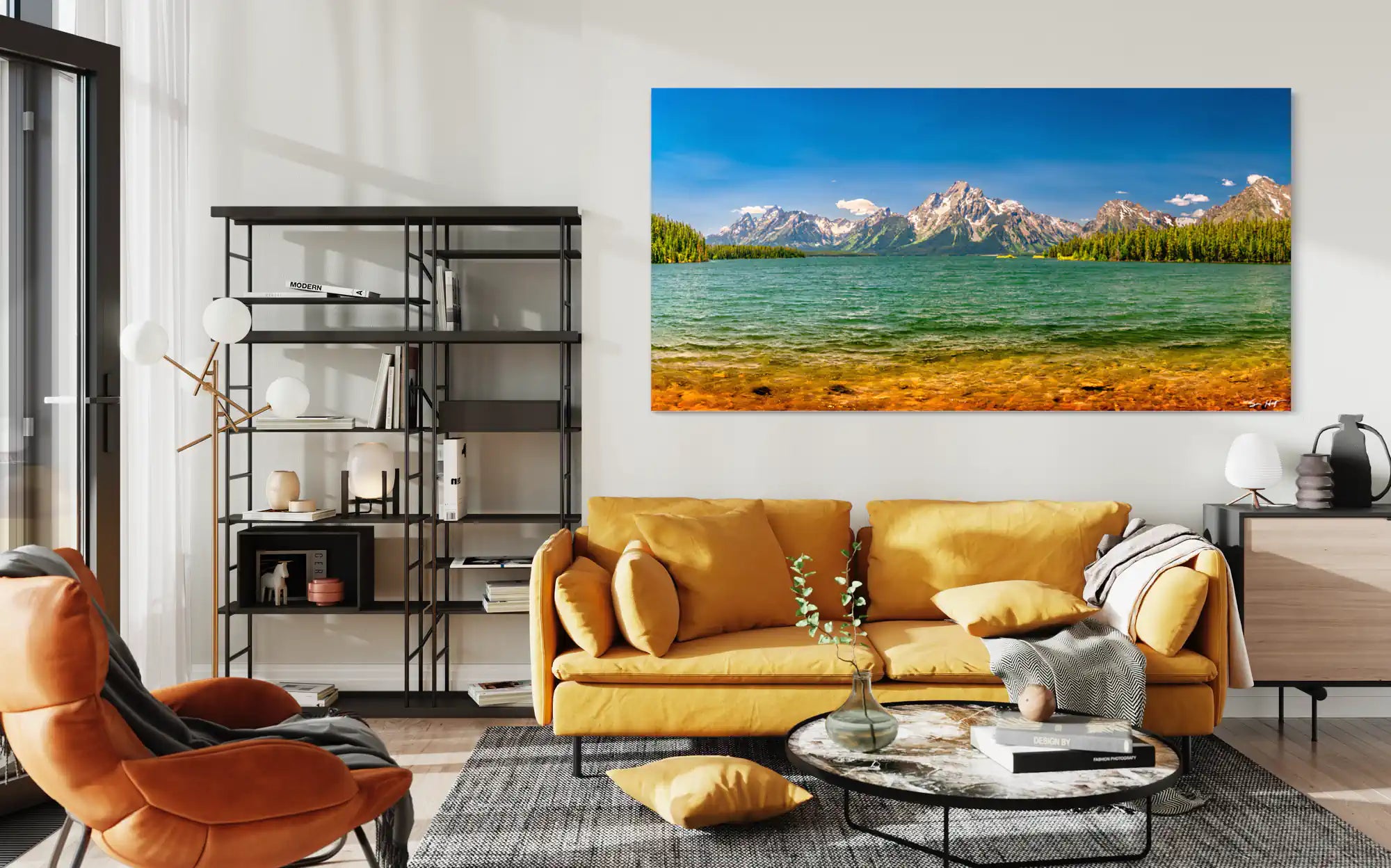 blue blue sky Grand Teton National Park green lakes mountains waves Wyoming yellow