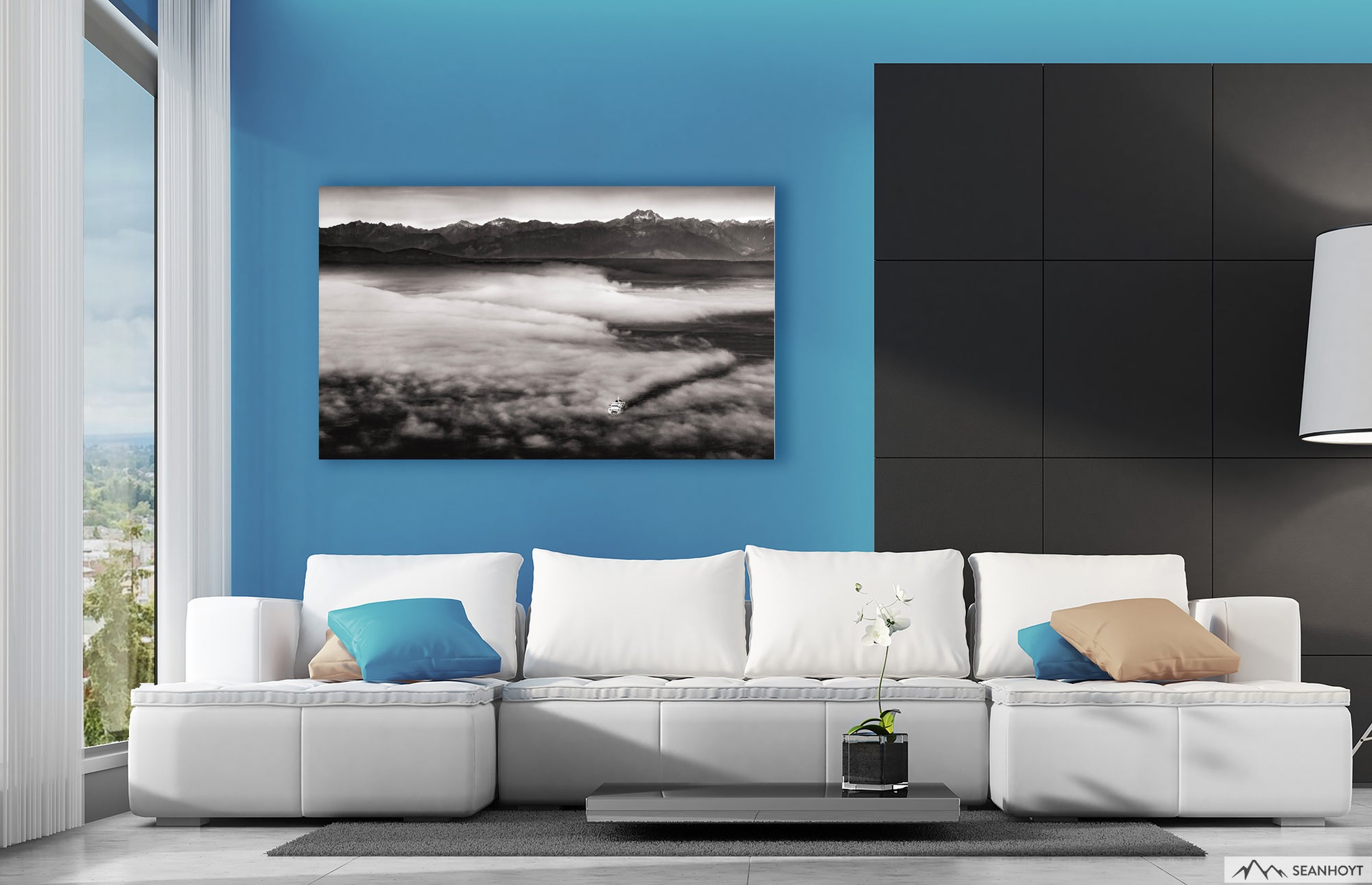 black and white clouds ferries fog landscapes monochromatic moresizes Olympic NP PNW Puget Sound Seattle Washington water