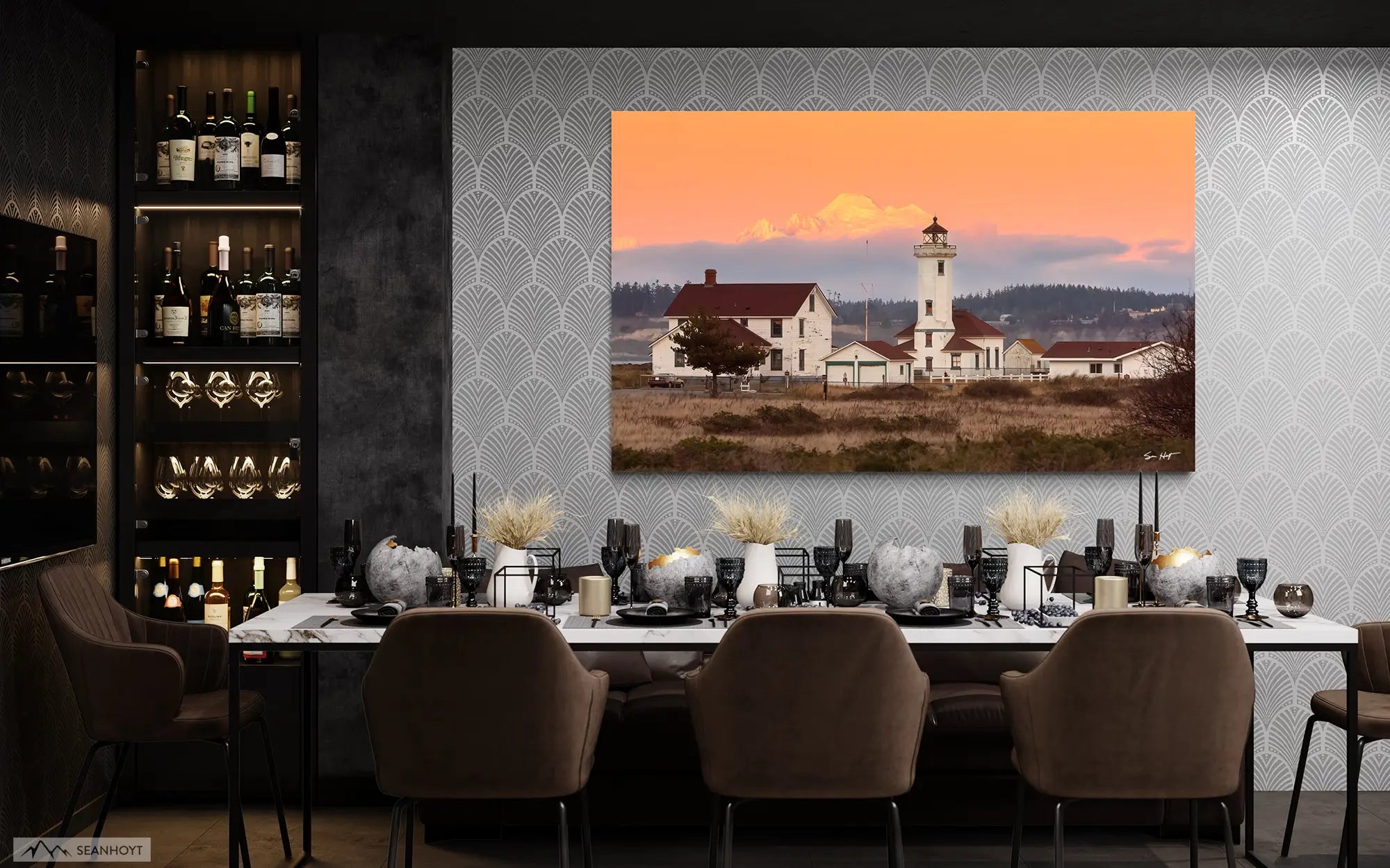 beach beaches blue Cascade Mountains lighthouse lighthouses Mount Baker mountains orange PNW Port Townsend volcanos