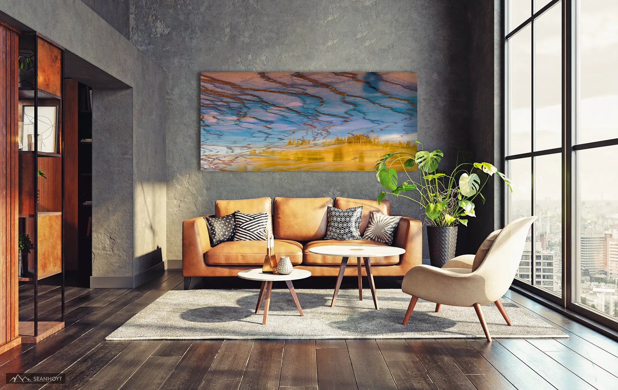 The TruView TruLife print is truely the top of the line when it comes to wall prints. The glass surface is highly scratch-resistant, is static-free, and dramatically removes distracting reflections. This glass protects the archive-quality print below and lets it shine through. The print mounts to the wall using an aluminum sub-frame that floats the surface 3/4" off the wall for prentation depth.