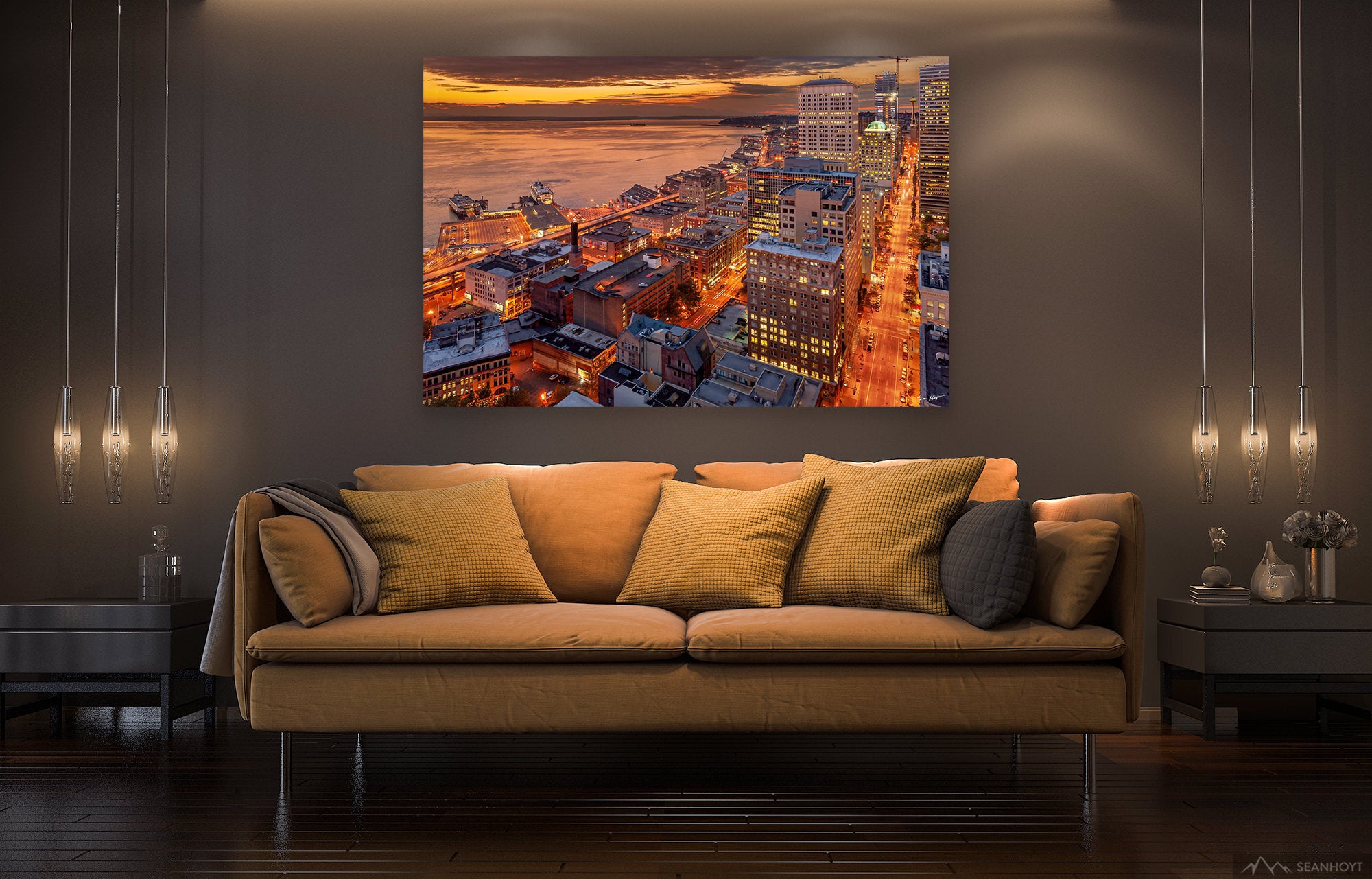 architecture cityscapes orange Puget Sound Seattle smith tower Space Needle sunrises & sunsets Washington yellow