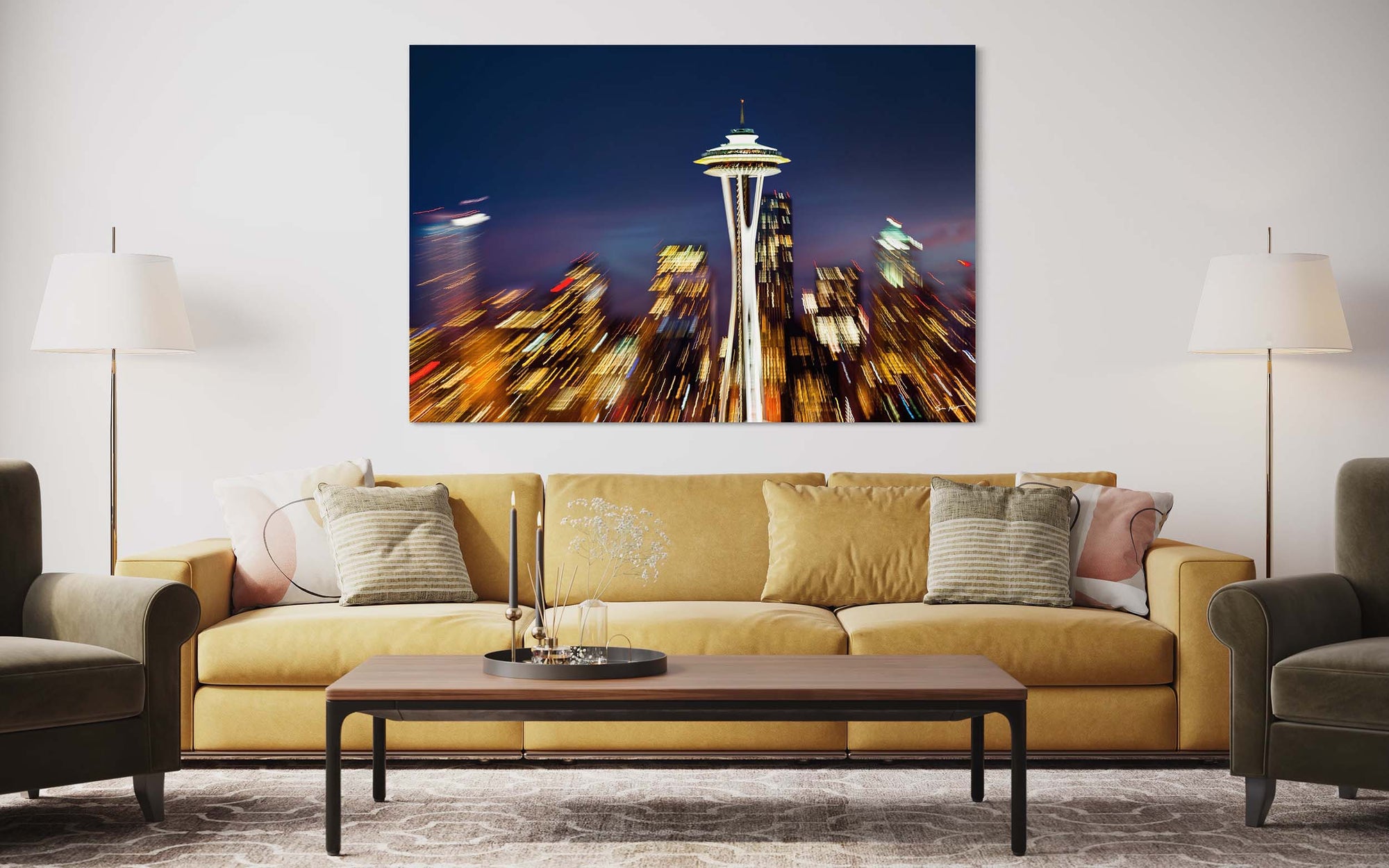 abstracts blue cityscapes orange Seattle Space Needle sunrises & sunsets Washington yellow