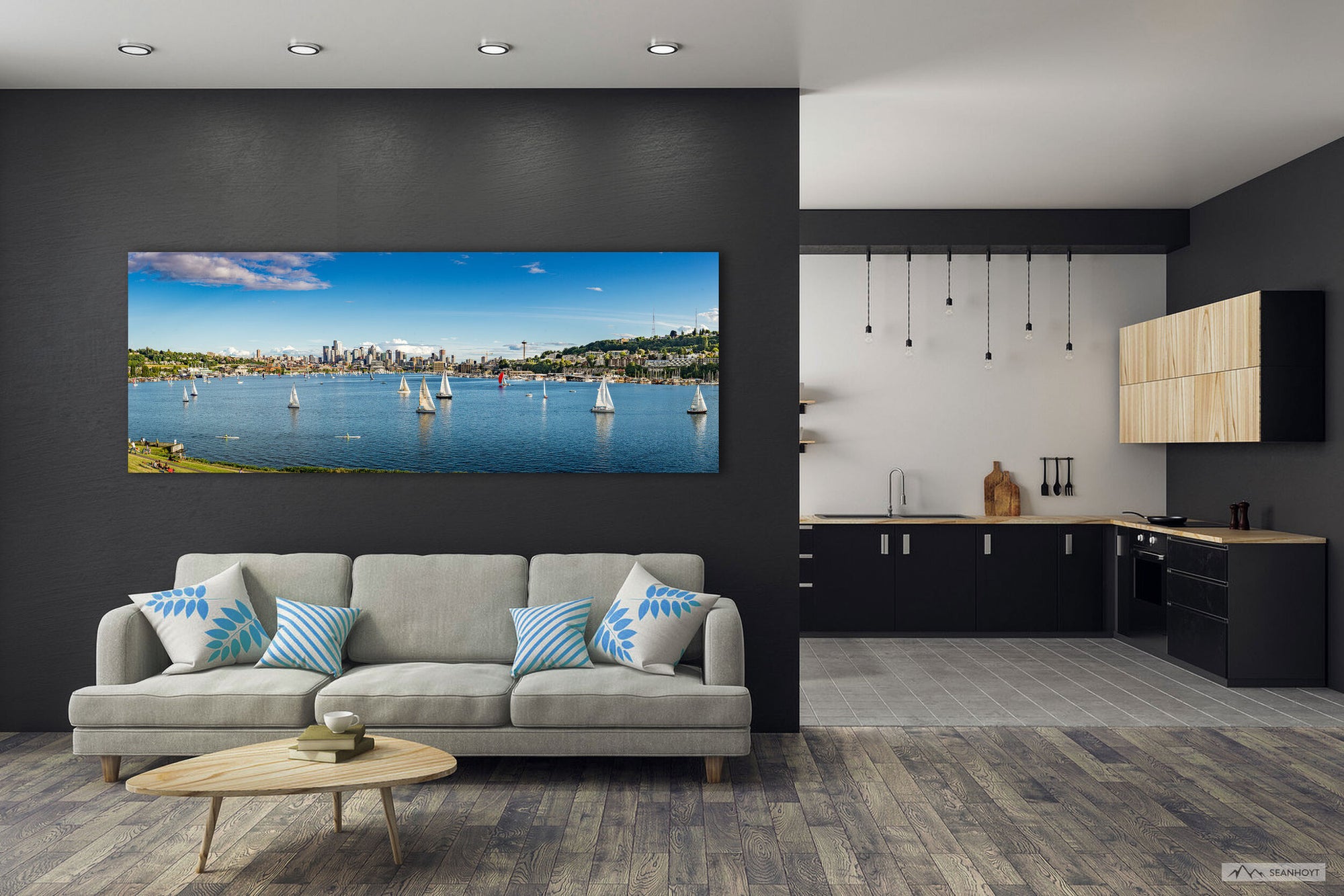 blue cityscapes gasworks park landscapes sailboats Seattle Space Needle summer Washington water