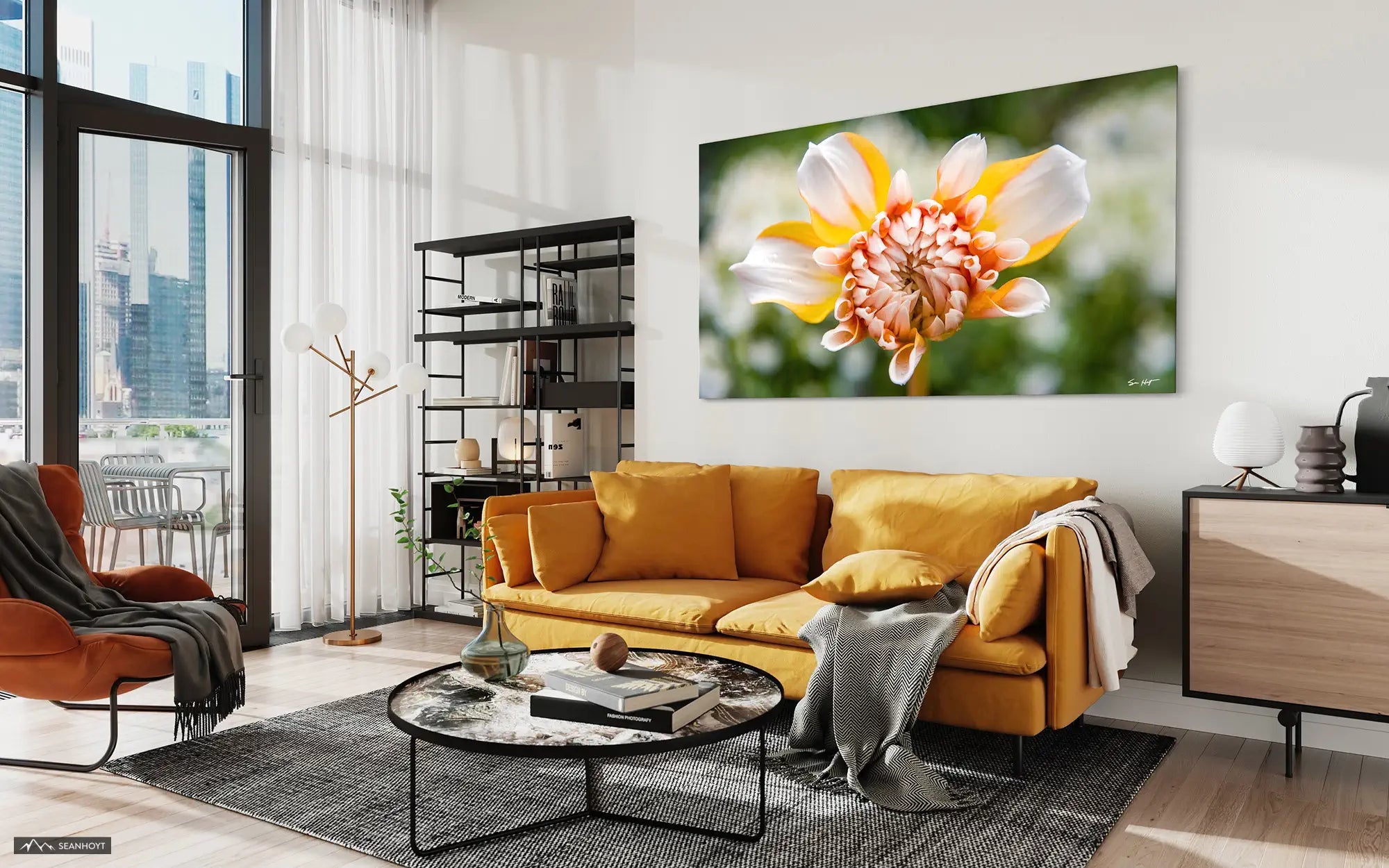 The TruView TruLife print is truely the top of the line when it comes to wall prints. The glass surface is highly scratch-resistant, is static-free, and dramatically removes distracting reflections. This glass protects the archive-quality print below and lets it shine through. The print mounts to the wall using an aluminum sub-frame that floats the surface 3/4" off the wall for prentation depth.