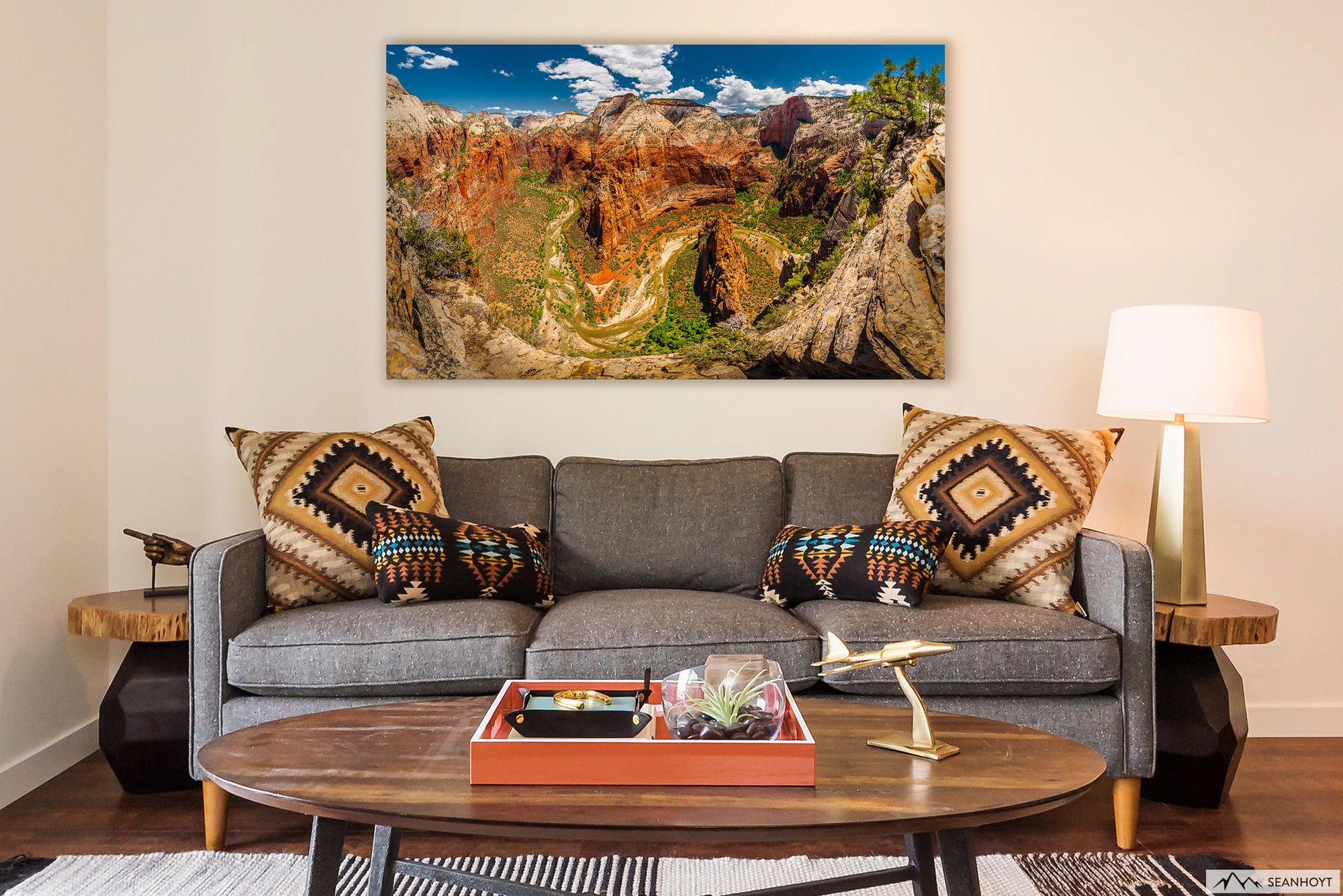 Of course, I lugged up my dSLR and heavy lenses. At the top, I laid out flat at the edge and shot a panoramic looking North up the canyon towards the famous Narrows. It might not seem at first, but the bottom of the photo is a quarter mile straight down to the river. Tons of detail in this very large resolution image and it shines on metallic paper behind the acrylic. Make sure you have nice track lights installed for this one!